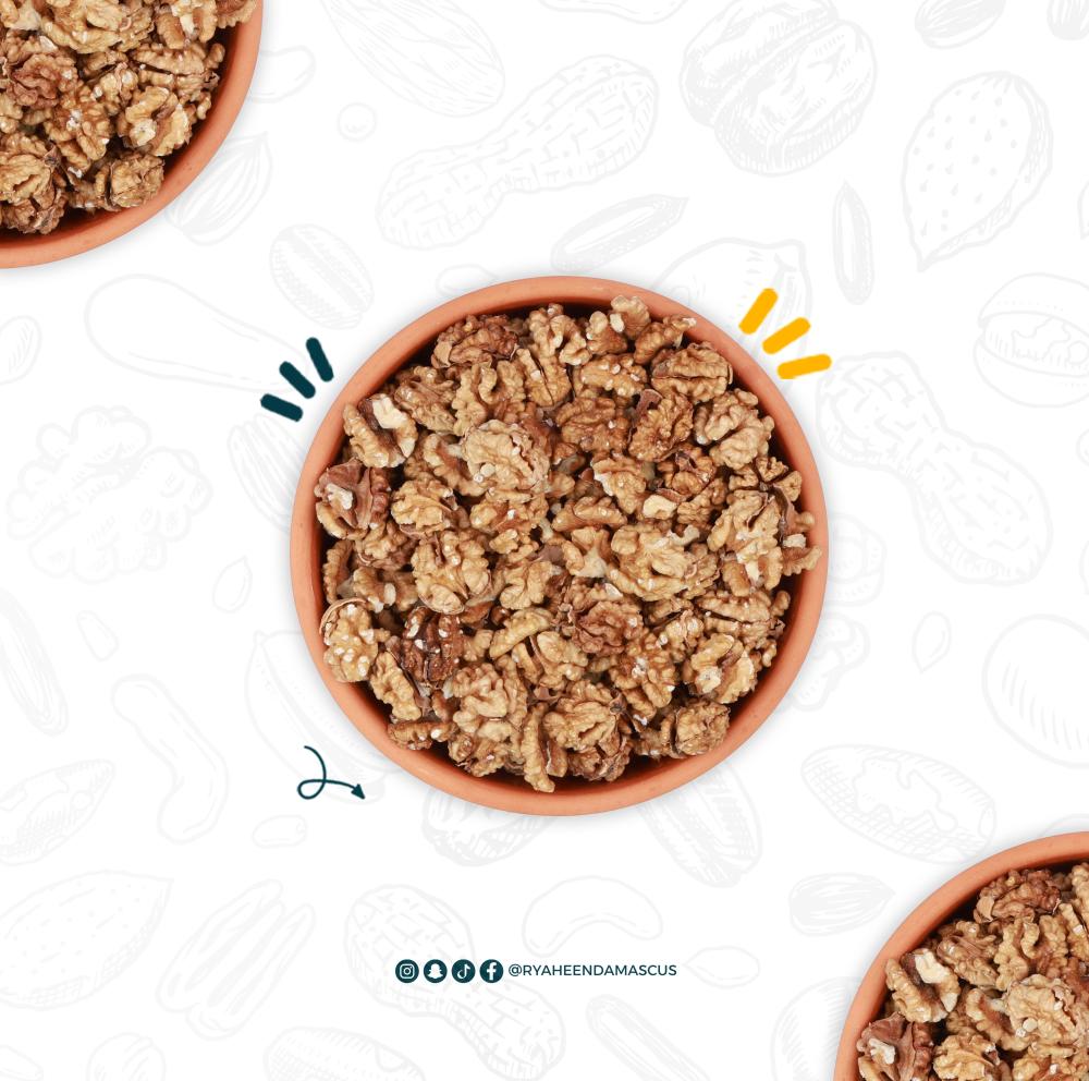 جوز طبيعي فاخر، حبات كاملة غير مكسورة، لون فاتح ونكهة زيتية ناعمة، غني بالأوميغا 3 والبروتين، مثالي للطبخ والحلويات والمكسرات الفاخرة.